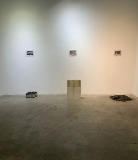 In the spaces viewed outside the gallery, I "removed" physical mass without permission from a wall and the blacktop. The "sculptures" were placed next to their suggested "voids" to show displacement of space and perception of Authenticity, as well as giving "life" to mechanized systems and areas that are considered mundane and automatic.